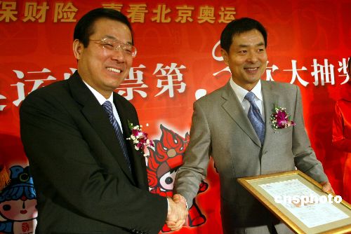 一月四日,著名表演藝術(shù)家濮存昕受邀為“擁有人保財(cái)險(xiǎn),喜看北京奧運(yùn)——萬(wàn)張奧運(yùn)門(mén)票大抽獎(jiǎng)”活動(dòng)進(jìn)行第三次抽獎(jiǎng)。在活動(dòng)上,濮存昕被北京2008年奧運(yùn)會(huì)保險(xiǎn)合作伙伴中國(guó)人保財(cái)險(xiǎn)聘為公司奧運(yùn)形象大使。他高興地表示,自己已經(jīng)提出申請(qǐng)成為北京殘奧會(huì)志愿者, 希望參與更多的社會(huì)公益事業(yè)。中新社發(fā) 楊可佳 攝