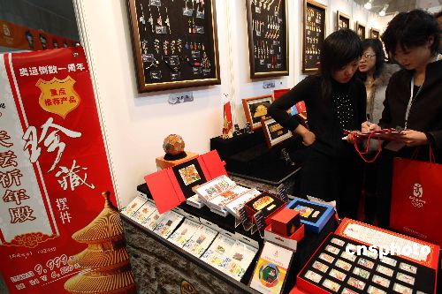 圖為北京奧運(yùn)特許商品展示會(huì)現(xiàn)場(chǎng)。