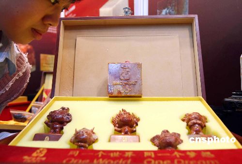 圖為壽山石福娃亮相展會(huì)。