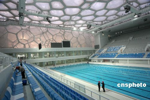 1月9日,“水立方”游泳池正式亮相,泳池內(nèi)已注滿水與頂部的“水泡泡”渾然一體, 內(nèi)部裝修也進(jìn)入掃尾階段!昂眠\(yùn)北京”中國游泳公開賽將在1月31日至2月5日在“水立方”——國家游泳中心舉辦。屆時(shí),“水立方”將正式亮相。中新社發(fā) 吳芒子 攝