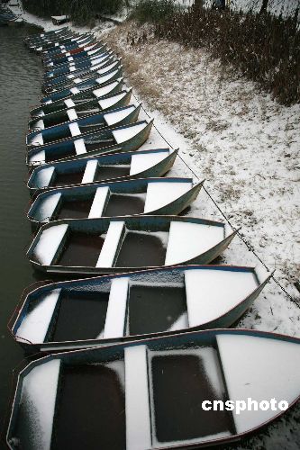 1月12日晚,江城武漢迎來(lái)2008年第一場(chǎng)雪,當(dāng)晚,該市氣象臺(tái)發(fā)布道路結(jié)冰橙色預(yù)警信號(hào)。1月13日,武漢城區(qū)被積雪覆蓋。中新社發(fā) 王振武 攝