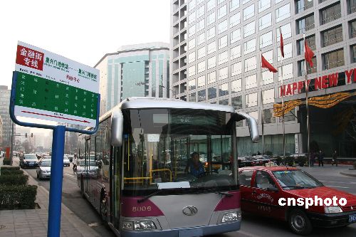 1月15日,金融街免費專線公交開通,以方便區(qū)域內(nèi)8萬從業(yè)人員出行。金融街專線全程共設(shè)復(fù)興門地鐵站至辟才胡同7個站點。每日早7:30至9:00及16:30至19:00點發(fā)車,節(jié)假日停駛。中新社發(fā) 富田 攝