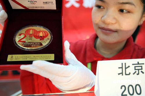 1月21日,正值北京奧運(yùn)會倒計(jì)時200天,奧運(yùn)會特許商品旗艦店舉行徽章、郵品、貴金屬等以奧運(yùn)倒計(jì)時為主題的新品銷售活動,吸引了大批收藏愛好者。中新社發(fā) 任海霞 攝