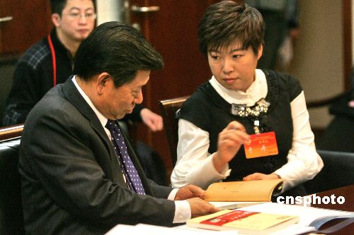 1月21日,北京市新一屆政協(xié)委員于丹與北京市政協(xié)主席陽(yáng)安江在文藝界別小組討論會(huì)上討論問題。于丹是北京師范大學(xué)藝術(shù)與傳媒學(xué)院副教授,因2006年“十一”黃金假日在央視“百家講壇”連續(xù)七天播出專題講座“于丹《論語》心得”而被人們所熟知。中新社發(fā) 杜燕 攝