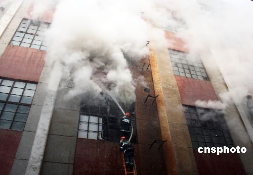 1月22日下午1點鐘左右,位于丹東市錦山大街和公安后街交界處的一個家具廠庫房發(fā)生大火,大火迅速蔓延到整個樓層,濃煙彌漫了整個廠區(qū)和相隔僅幾十米的居民區(qū),而且當時三樓以上還有部分工人在樓內上班。險情發(fā)生后,丹東消防部門從各消防中隊迅速調派20多輛消防車趕到現(xiàn)場進行滅火和人員救援。下午三點多鐘,大火被控制住,樓內的工人也安全撤出。據(jù)了解,由于三樓的工人對供暖設施進行拆除,焊接時引燃了二樓庫房內的家具導致了這場大火。中新社發(fā) 陳浩浩 攝