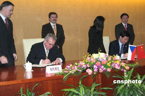 一月二十三日,捷克政府在上海與中方簽署2010年上海世博會參展合同。捷克官方同時公布其參展上海世博會的展示主題為“文明的果實”。上海世博會捷克展館位于世博園C片區(qū)。該國政府將向中方租用2000平方米的租賃館,營造包括一處人工瀑布景觀在內(nèi)的時尚展區(qū)。捷方表示,預計在上海世博會舉辦期間,捷克展館每小時有望吸引三千五百名游客。此外,捷克首都布拉格還將參與上海世博會“城市最佳實踐區(qū)”的案例申報。中新社發(fā) 許曉青 攝