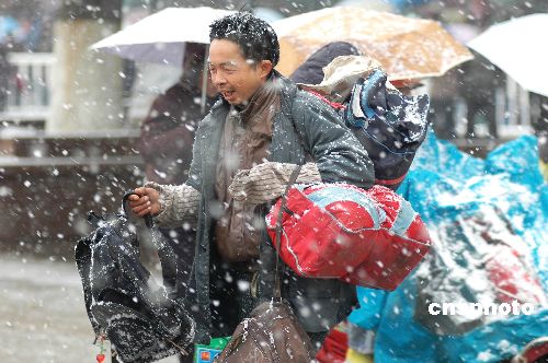1月27日,旅客頂著風(fēng)雪準(zhǔn)備進(jìn)入無錫站乘車回家。1月26日起,無錫再次遭遇大范圍降雪天氣。受大雪影響,錫城大部分高速被迫關(guān)閉,大量旅客回鄉(xiāng)心切,紛紛改乘火車,無錫站客流激增。中新社發(fā) 迭戈 攝