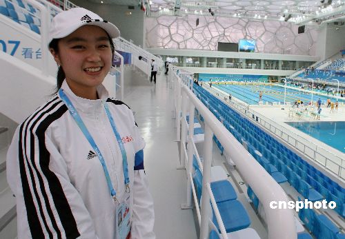 1月29日北京天寒地凍,剛剛完工的北京奧運會游泳場館——國家游泳館(水立方)內(nèi)溫暖如春,主要由清華大學(xué)學(xué)生組成的數(shù)千名志愿者在靚麗柔美的游泳館“上崗”,迎接1月31日開始的中國游泳公開賽。中新社發(fā) 任晨鳴 攝
