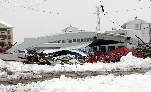 1月29日,安徽合肥經(jīng)濟開發(fā)區(qū)一加油站因不堪暴雪重負,轟然倒塌,目前救援工作正在進行中。中新社發(fā) 成展鵬 攝