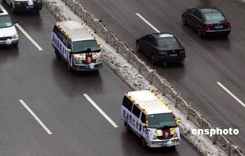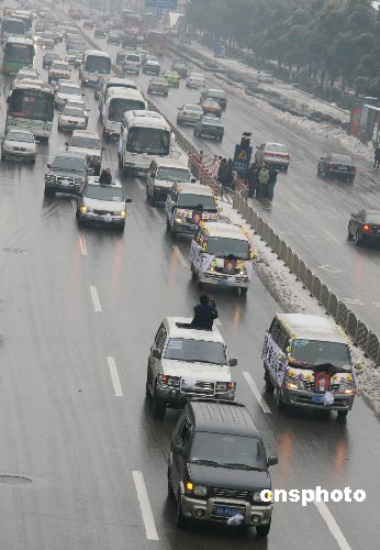 圖:長沙市民送別在雪災(zāi)中犧牲的三位烈士