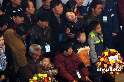 1月30日下午,為確保國(guó)家電網(wǎng)安全而獻(xiàn)出寶貴生命的湖南電力公司員工羅海文、羅長(zhǎng)明、周景華三位烈士的追悼大會(huì)在長(zhǎng)沙陽(yáng)明山殯儀館舉行。1月末,湖南正遭遇五十年一遇的冰雪災(zāi)害,三位烈士于26日在對(duì)電網(wǎng)線路人工除冰時(shí),從高空墜地身亡。圖為追悼會(huì)上悲痛欲絕的烈士家屬。中新社發(fā) 白祖偕 攝