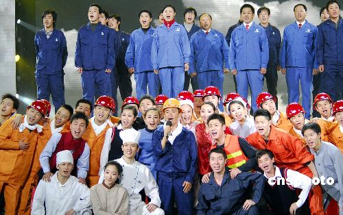 1月30日晚,中央電視臺(tái)2008春節(jié)聯(lián)歡晚會(huì)節(jié)目彩排在一號(hào)演播大廳進(jìn)行,由于南方持續(xù)大雪災(zāi)情嚴(yán)重,節(jié)目組臨時(shí)決定加入慰問(wèn)受災(zāi)地區(qū)的內(nèi)容,而先前安排的一些節(jié)目不得不合并,甚至被取消。而原本就備受關(guān)注的《農(nóng)民工之歌》,在此次南方經(jīng)歷雪災(zāi)之后,顯得越發(fā)契合春晚的主題和氣氛。 中新社發(fā) 楊可佳 攝