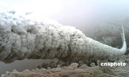 圖:廣西柳州一移動(dòng)光纜被冰雪凍結(jié)