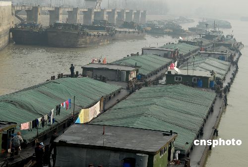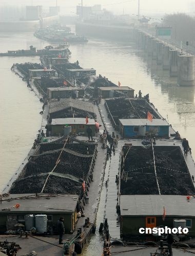 2月4日,運(yùn)輸電煤的船隊(duì)通過(guò)京杭運(yùn)河山東臺(tái)兒莊段船閘。由于近期大雪對(duì)南方運(yùn)輸造成嚴(yán)重影響,各火力發(fā)電企業(yè)出現(xiàn)燃“煤”之急,連日來(lái),京杭運(yùn)河山東臺(tái)兒莊段船閘簡(jiǎn)化工作程序,并優(yōu)先安排過(guò)閘,電煤運(yùn)輸船舶隨到隨辦、隨辦隨走,當(dāng)?shù)睾竭\(yùn)、水上派出所還為電煤運(yùn)輸船舶清道護(hù)航,全力確保航行安全。中新社發(fā) 高啟民 攝