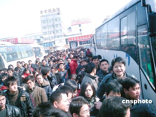 2月4日,安徽省合肥長途汽車站迎來雪后恢復運行的第一個短途客運高峰。由于久雪之后天氣放晴,加上臨近年關,合肥長途汽車站內旅客激增,當日大約有2萬多名乘客擁擠在該站車站內,排成一條條“長龍”。中新社發(fā) 張發(fā)平 攝