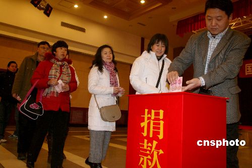 五十年一遇的罕見雪災(zāi)仍舊肆虐著中國南部的一些省份,為了幫助受災(zāi)地區(qū)群眾抗災(zāi),二月四日,國務(wù)院僑辦組織自愿捐款活動(dòng),僑辦主任李海峰,副主任許又聲、馬儒沛、任啟亮,中國海外交流協(xié)會(huì)副會(huì)長(zhǎng)林文肯及僑辦機(jī)關(guān)和直屬單位的領(lǐng)導(dǎo)干部,將一份份“愛心”投入捐款箱中。據(jù)統(tǒng)計(jì),此次捐款活動(dòng)共收到干部捐款和下屬單位捐款二百零六萬二千六百三十元人民幣。中新社發(fā) 張勤 攝