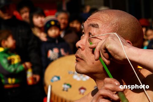 2月10日,在天津樂園春節(jié)廟會上,來自民間的藝術(shù)家表演了中國民間古典絕活,讓節(jié)日游園的市民大飽眼福。中新社發(fā) 展曉仁 攝