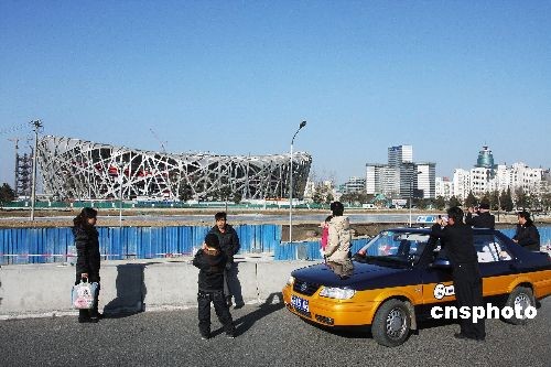 2月16日,位于國(guó)家體育場(chǎng)--鳥(niǎo)巢南側(cè)的北辰橋上大批市民在拍照留念,形成一道獨(dú)特的風(fēng)景線(xiàn)。因高架橋上視野開(kāi)闊,角度頗佳,所以吸引了眾多拍照者在此駐足留影。圖為一出租車(chē)司機(jī)也停車(chē)在此拍照欣賞一番這獨(dú)特的風(fēng)景。中新社發(fā) 鄭雄增 攝