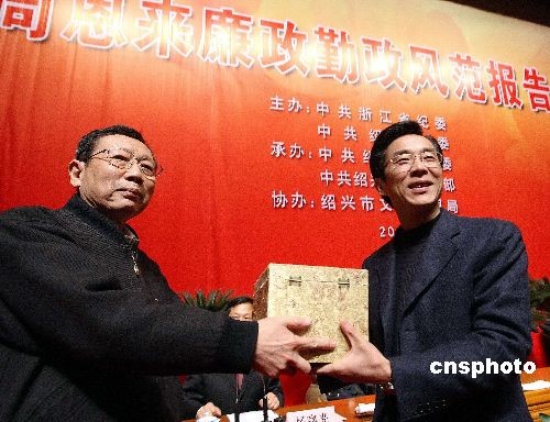 2月19日,浙江省紀(jì)委和紹興市委舉行了“周恩來廉政勤政風(fēng)范報(bào)告會(huì)”和“周恩來風(fēng)范在線網(wǎng)站”開通儀式系列紀(jì)念活動(dòng)。周恩來的親屬、生前身邊工作人員在報(bào)告會(huì)上講述了周恩來廉政勤政的往事。今年3月5日是中國開國總理周恩來誕辰110周年,浙江紹興是周恩來的祖籍。中新社發(fā) 袁云 攝