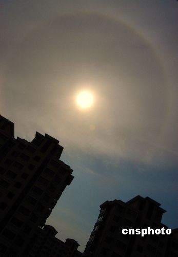 2月24日上午9時許,山東煙臺上空出現(xiàn)日暈現(xiàn)象,至中午11時30分,日暈開始變淺,隨后漸漸淡去。中新社發(fā) 木棉 攝