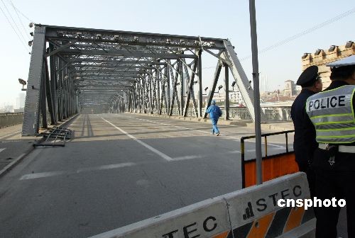 3月1日零時(shí),上海外白渡橋準(zhǔn)時(shí)封閉交通,它的整修工程也將隨之展開(kāi),擇日整體移入工廠進(jìn)行大修。中新社發(fā) 湯彥俊 攝