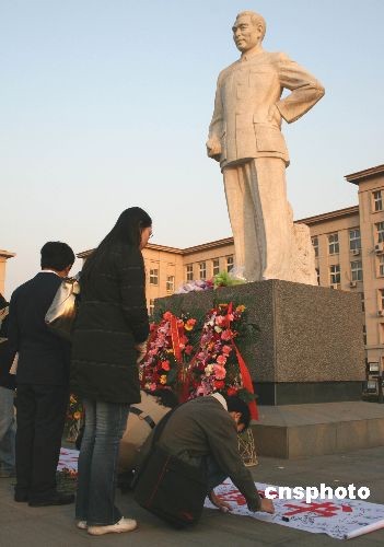 圖:天津大學(xué)生紀(jì)念周恩來(lái)誕辰110周年