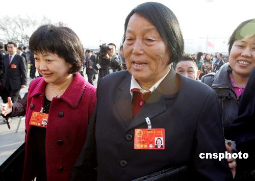 三月五日,連任十一屆全國(guó)人大代表、被譽(yù)為世界上資格最老的“議員”申紀(jì)蘭,再次來(lái)到北京人民大會(huì)堂,出席十一屆全國(guó)人大一次會(huì)議開幕會(huì),繼續(xù)創(chuàng)造政壇“神話”。中新社發(fā) 潘索菲 攝
