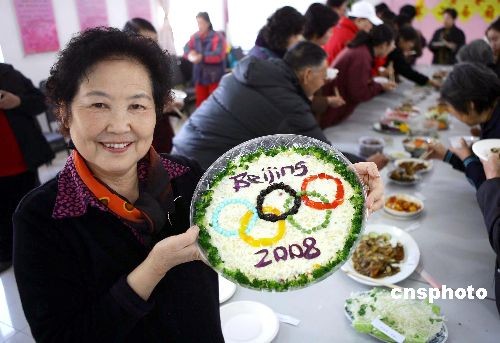 一道用蔬菜制成的“奧運(yùn)沙拉”成為宴席上的亮點(diǎn)。