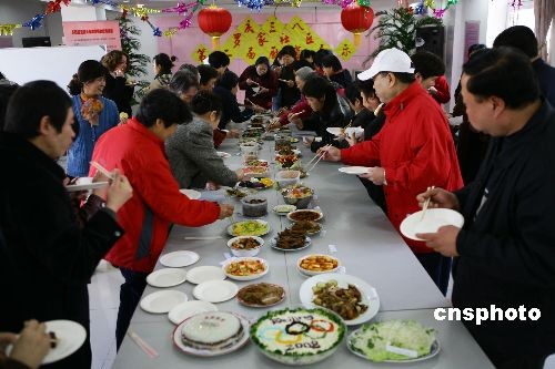 3月7日,北京市東城區(qū)東四羅家社區(qū)舉辦百家宴慶祝三八婦女節(jié),近百戶居民拿來了自己的拿手菜,集中到一起供大家品嘗、評(píng)選。中新社發(fā) 杜洋 攝