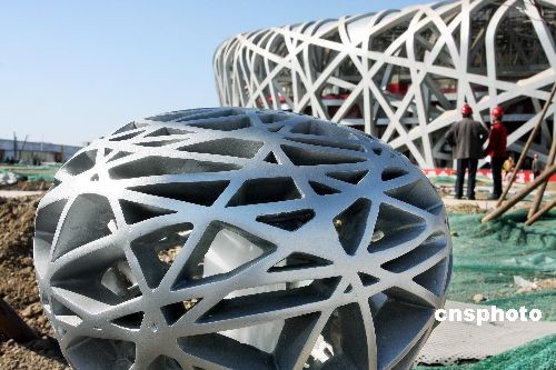 3月13日,中國(guó)國(guó)家體育場(chǎng)“鳥巢”正在加緊內(nèi)部裝修,北京奧運(yùn)場(chǎng)館和設(shè)施四月底前將全部竣工或完工圖為國(guó)家體育場(chǎng)“鳥巢”周邊安裝好的“小鳥巢”路燈與大“鳥巢”相映成趣。中新社發(fā) 鄭雄增 攝