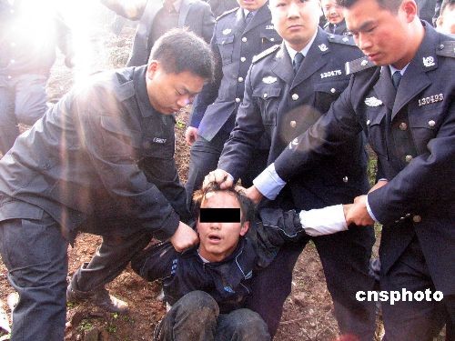3月19日,婁底市公安局婁星分局民警抓獲殺害治安巡邏隊(duì)員譚靜宇的犯罪嫌疑人鐘倫慧。 中新社發(fā) 郭國權(quán) 攝