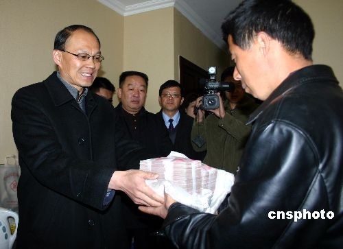 從3月30日起,西藏自治區(qū)政府將陸續(xù)向“3·14”打、砸、搶、燒嚴(yán)重暴力事件中無(wú)辜喪生者家屬發(fā)放特殊撫恤金,金額為每人二十萬(wàn)元人民幣。圖為3月30日西藏自治區(qū)政府官員正在向無(wú)辜喪生者家屬發(fā)放特殊撫恤。中新社發(fā) 鄒輝 攝