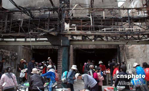 4月12日,昔日繁華似錦的拉薩市朵森格路又恢復(fù)了往日的景象。街道上車水馬龍,人來人往,各種商品琳瑯滿目,選購的人們絡(luò)繹不絕,盡管在“3.14”暴力事件中許多被焚燒成廢墟的經(jīng)營大樓還處在修復(fù)之中,但整個(gè)市場(chǎng)交易已呈現(xiàn)出十分火紅的景象。中新社發(fā) 周波 攝
