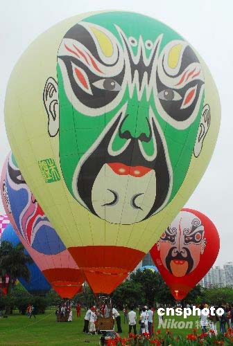 2008年4月28日,來(lái)自全國(guó)各地的40個(gè)熱氣球在?谑腥f(wàn)綠園進(jìn)行系留飛行,供?趫(bào)名參與的2000名市民乘坐體驗(yàn)升空。中新社發(fā) 善平 攝