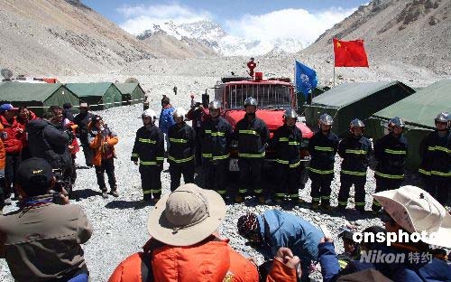 圖:中外媒體聚焦珠峰大本營消防官兵