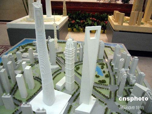 5月7日,上海有關(guān)部門發(fā)布最新環(huán)境評(píng)價(jià)公示信息,證實(shí)上海擬于2008年年內(nèi)開建高達(dá)580米的超高層建筑“上海中心”大廈。這意味著,該建筑將超過(guò)492米的上海環(huán)球金融中心和508米的臺(tái)北“一○一大樓”,一躍成為“中國(guó)第一高樓”。圖為“上海中心”大廈項(xiàng)目建筑設(shè)計(jì)的兩大備選方案之一“龍形”(見圖)及周邊環(huán)境模型。中新社發(fā) 許曉青 攝
