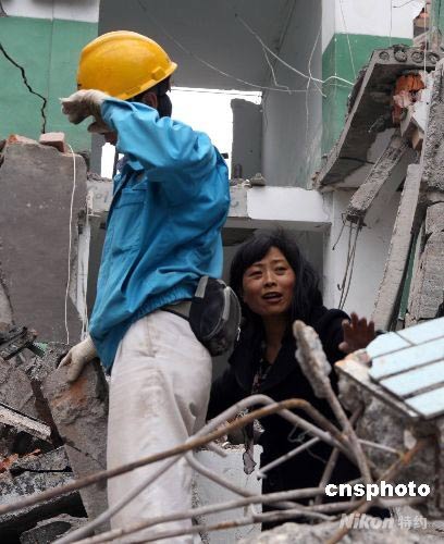 5月13日中午,四川省綿竹市漢旺鎮(zhèn)東方汽輪機廠子弟學校——東汽中學的垮塌校舍里,一名被埋學生的家長緊張地呼救,盼望自己的孩子能盡快脫困。12日,四川汶川縣發(fā)生7.8級地震,而漢旺鎮(zhèn)與汶川僅一山之隔,距離30余公里,受到嚴重破壞。中新社發(fā) 郭晉嘉 攝