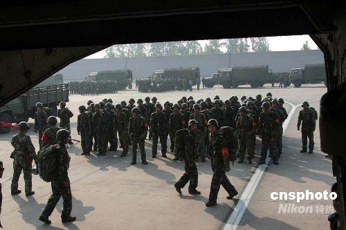 圖:四川汶川地震中國空降兵趕赴災區(qū)