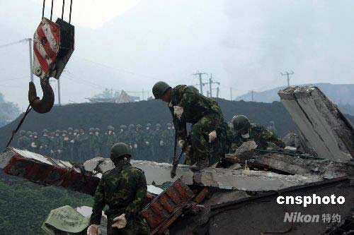 5月14日,中國空降兵某部已出動6500人在四川什邡縣境內(nèi)災(zāi)情最嚴重的洛水、紅白等地緊急搶救被困群眾。圖為空降兵戰(zhàn)士用鐵鉗剪斷鋼筋清混凝土救人。中新社發(fā) 譚超 攝