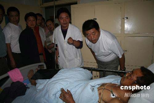 5月14日晚,由貴州省衛(wèi)生廳廳長何崇遠(yuǎn)帶領(lǐng)的首批貴州援川醫(yī)療隊近百人抵達(dá)四川眉山市,增援當(dāng)?shù)蒯t(yī)院救治地震災(zāi)區(qū)的傷員。眉山市各主要醫(yī)療單位在做好本地傷員救治工作的同時,大量收治來自四川綿竹等災(zāi)區(qū)的重傷員。貴州援川醫(yī)療隊抵達(dá)眉山市的當(dāng)晚,立即趕到病房和當(dāng)?shù)蒯t(yī)務(wù)人員一起會診重癥傷員,討論治療方案。中新社發(fā) 堯遙 攝