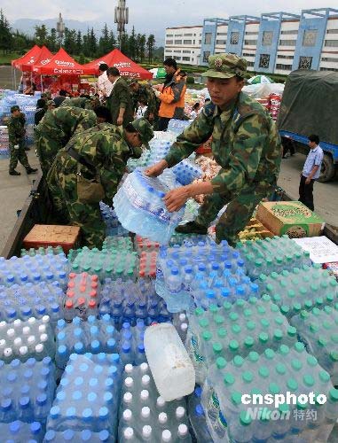 圖:四川地震災區(qū)救援物資及時發(fā)放