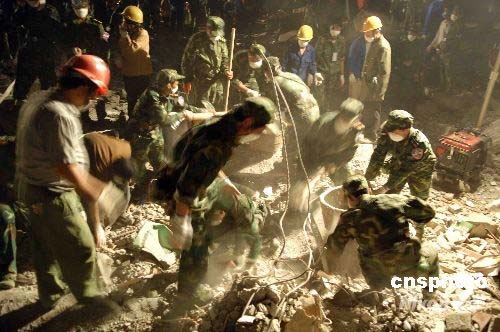 圖:北川中學(xué)發(fā)現(xiàn)多個(gè)遇難中學(xué)生遺體