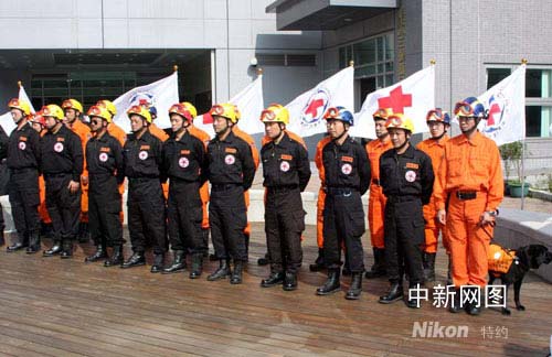 圖:戎裝即發(fā)的臺(tái)灣紅十字組織搜救隊(duì)