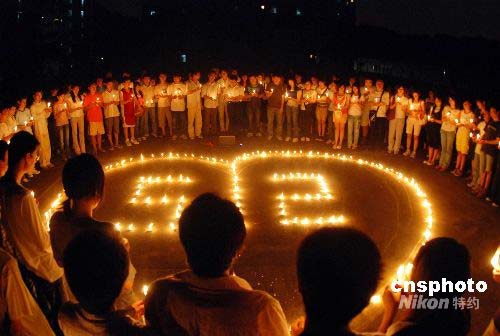 圖:大學(xué)生手捧蠟燭為災(zāi)區(qū)祈禱