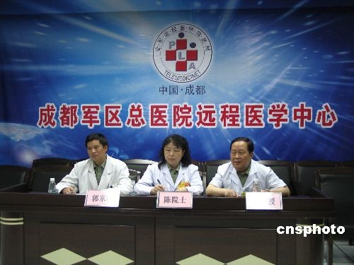5月18日上午,由解放軍總后勤部地震衛(wèi)勤總指揮部牽頭,解放軍301總醫(yī)院赴成都軍區(qū)總醫(yī)院醫(yī)療隊、成都軍區(qū)總醫(yī)院、南京軍區(qū)總醫(yī)院、西京醫(yī)院的四位腎科、胃腸外科院士及燒傷專家、急診專家在不同的地點共同對由第四軍醫(yī)大學(xué)赴四川安縣醫(yī)療隊救治的在地震中被埋124小時的一名21歲男性傷員進行遠程會診。通過在電視屏幕上對傷員病情的了解、對傷情的查看及傷員雙下肢功能的檢查,專家們提出了治療方案,以使傷者能夠盡快盡好地得到最有效的治療。