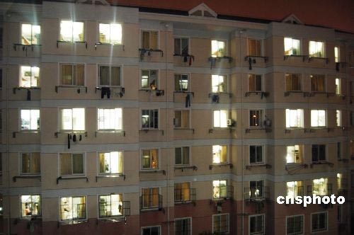 五月十九日夜晚,復(fù)旦大學(xué)校園內(nèi)的一幢學(xué)生宿舍樓內(nèi),學(xué)生們用各自房間燈光的明滅構(gòu)成“五·一二”字樣,以悼念在五月十二日發(fā)生的汶川大地震中遇難的同胞。中新社發(fā) 段更強(qiáng) 攝