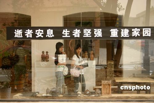 5月20日,北京市798藝術(shù)園區(qū)內(nèi)的部分商家為了表達(dá)自己對(duì)四川災(zāi)區(qū)的關(guān)切之情,在店鋪的門(mén)口掛上了賑災(zāi)標(biāo)語(yǔ)。