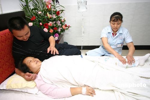 5月21日,護(hù)士給汶川來(lái)的產(chǎn)婦陳梅談心。17日上午10時(shí)許,重慶市永川區(qū)婦幼保健院順利地把來(lái)自四川省汶川地震災(zāi)區(qū)的陳梅產(chǎn)婦生下一男嬰,那是她經(jīng)過(guò)10小時(shí),徒步32公里,從汶川震區(qū)撤離出來(lái),才換來(lái)的小生命。嬰兒從出生以來(lái),醫(yī)院讓小生命住進(jìn)嬰兒培養(yǎng)箱,以促進(jìn)小生命的身體健康。中新社發(fā) 陳仕川 攝