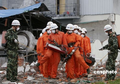 5月21日,救援部隊在四川省什邡市鎣華鎮(zhèn)、洛水鎮(zhèn)進(jìn)行消毒防疫。中新社發(fā) 張曉理 攝