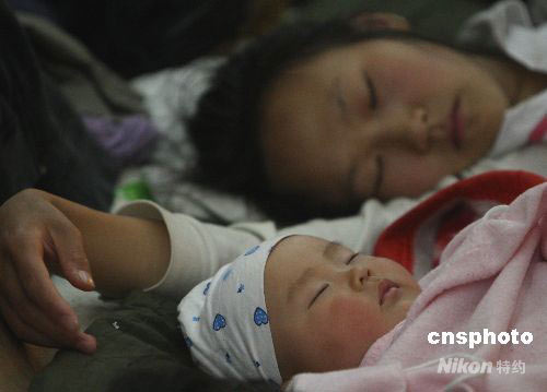 5月22日凌晨1時(shí),四川汶川大地震重災(zāi)區(qū)民眾約2萬多人在綿陽市九州體育館休息。中新社發(fā) 趙振清 攝